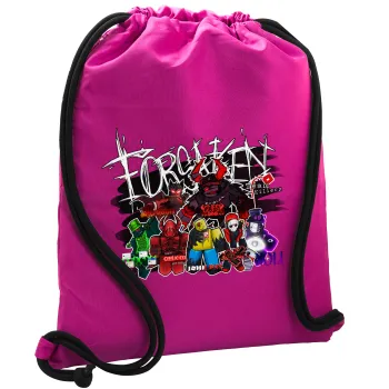 Roblox Forsaken, Τσάντα πλάτης πουγκί GYMBAG Φούξια, με τσέπη (40x48cm) & χονδρά κορδόνια