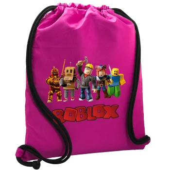 Roblox squad, Τσάντα πλάτης πουγκί GYMBAG Φούξια, με τσέπη (40x48cm) & χονδρά κορδόνια