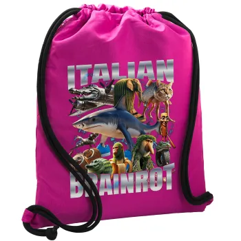 Italian Brainrot, Τσάντα πλάτης πουγκί GYMBAG Φούξια, με τσέπη (40x48cm) & χονδρά κορδόνια