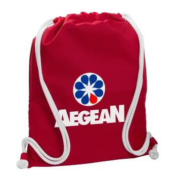 Πρατήριο καυσίμων AEGEAN, Τσάντα πλάτης πουγκί GYMBAG Κόκκινη, με τσέπη (40x48cm) & χονδρά κορδόνια