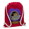Baby Yoda mandalorian, Τσάντα πλάτης πουγκί GYMBAG Κόκκινη, με τσέπη (40x48cm) & χονδρά κορδόνια