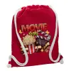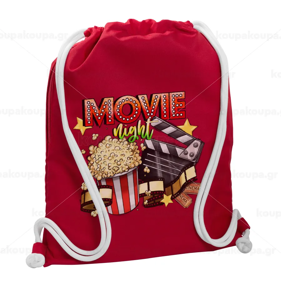 Movie night, Τσάντα πλάτης πουγκί GYMBAG Κόκκινη, με τσέπη (40x48cm) & χονδρά κορδόνια