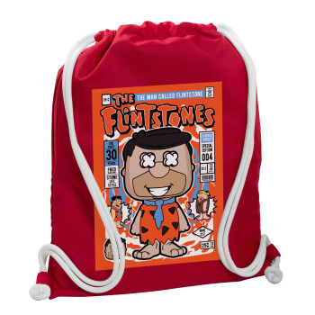The flintstones, Τσάντα πλάτης πουγκί GYMBAG Κόκκινη, με τσέπη (40x48cm) & χονδρά κορδόνια