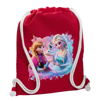 Έλσα & Άννα, Τσάντα πλάτης πουγκί GYMBAG Κόκκινη, με τσέπη (40x48cm) & χονδρά κορδόνια
