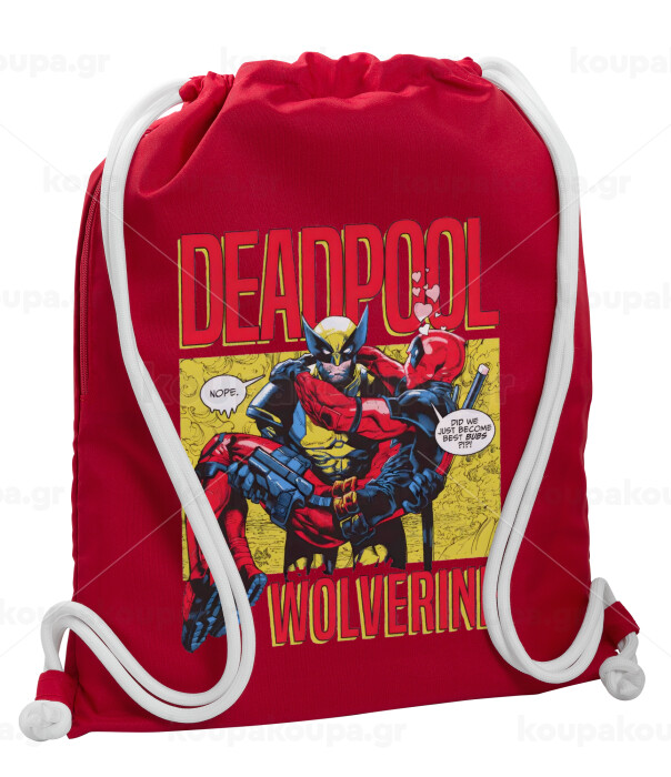 Superhero Deadpool Wolverine, Τσάντα πλάτης πουγκί GYMBAG Κόκκινη, με τσέπη (40x48cm) & χονδρά κορδόνια