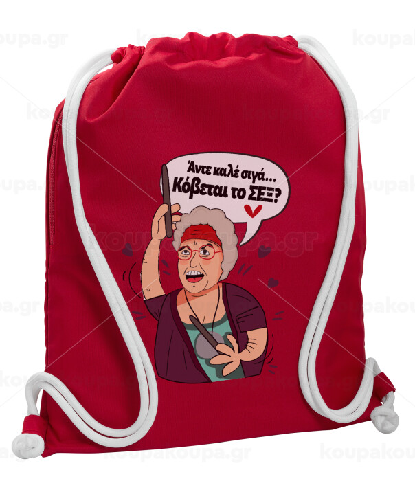 Αντε καλέ, σιγά, κόβεται το σέξ ;, Τσάντα πλάτης πουγκί GYMBAG Κόκκινη, με τσέπη (40x48cm) & χονδρά κορδόνια