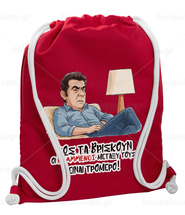 ΠΩΣ ΤΑ ΒΡΙΣΚΟΥΝ ΟΙ ΒΛΑ....ΝΟΙ ΜΕΤΑΞΥ ΤΟΥΣ, ΕΙΝΑΙ ΤΡΟΜΕΡΟ!!!, Τσάντα πλάτης πουγκί GYMBAG Κόκκινη, με τσέπη (40x48cm) & χονδρά κορδόνια