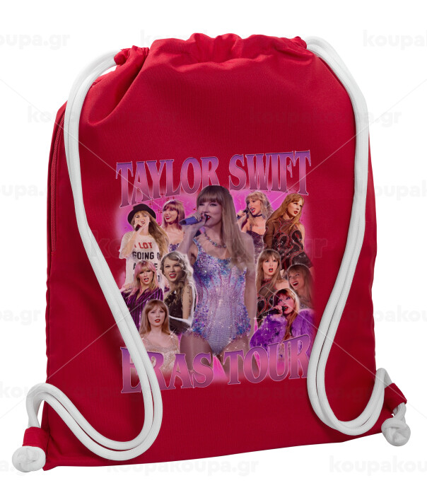 Taylor Swift, Τσάντα πλάτης πουγκί GYMBAG Κόκκινη, με τσέπη (40x48cm) & χονδρά κορδόνια