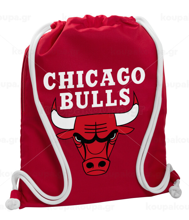 Chicago Bulls, Τσάντα πλάτης πουγκί GYMBAG Κόκκινη, με τσέπη (40x48cm) & χονδρά κορδόνια