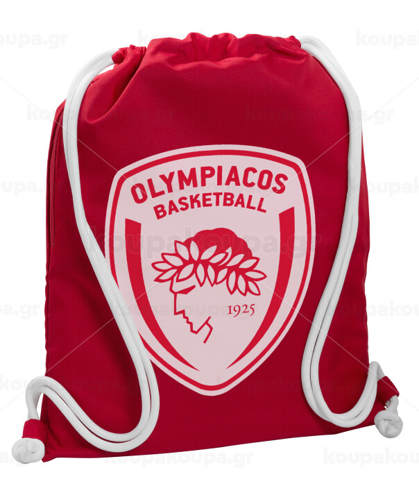 Olympiacos B.C., Τσάντα πλάτης πουγκί GYMBAG Κόκκινη, με τσέπη (40x48cm) & χονδρά κορδόνια