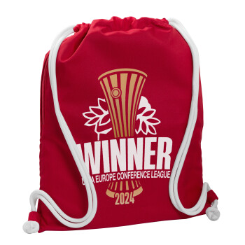 Europa Conference League WINNER, Τσάντα πλάτης πουγκί GYMBAG Κόκκινη, με τσέπη (40x48cm) & χονδρά κορδόνια