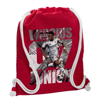 Vinícius Júnior (Βινίσιους Ζούνιορ), Τσάντα πλάτης πουγκί GYMBAG Κόκκινη, με τσέπη (40x48cm) & χονδρά κορδόνια