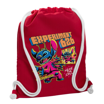 Stitch Experiment 626, Τσάντα πλάτης πουγκί GYMBAG Κόκκινη, με τσέπη (40x48cm) & χονδρά κορδόνια