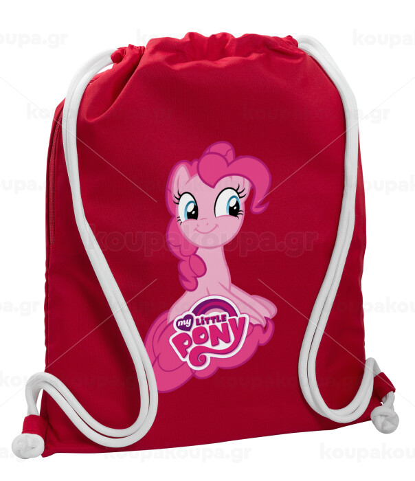 Μικρό μου Πόνυ, Τσάντα πλάτης πουγκί GYMBAG Κόκκινη, με τσέπη (40x48cm) & χονδρά κορδόνια
