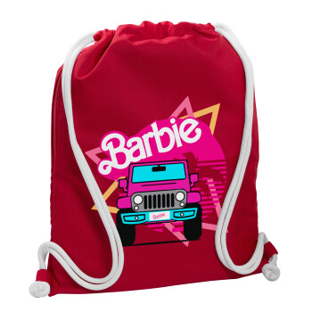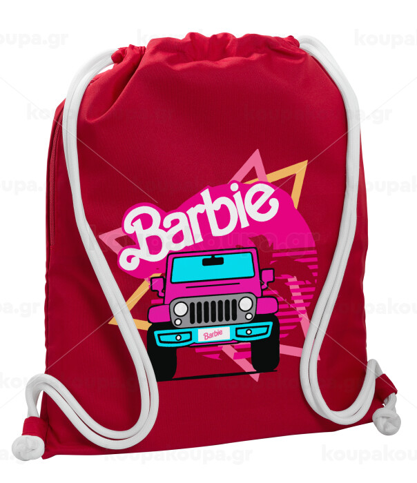 Barbie car, Τσάντα πλάτης πουγκί GYMBAG Κόκκινη, με τσέπη (40x48cm) & χονδρά κορδόνια