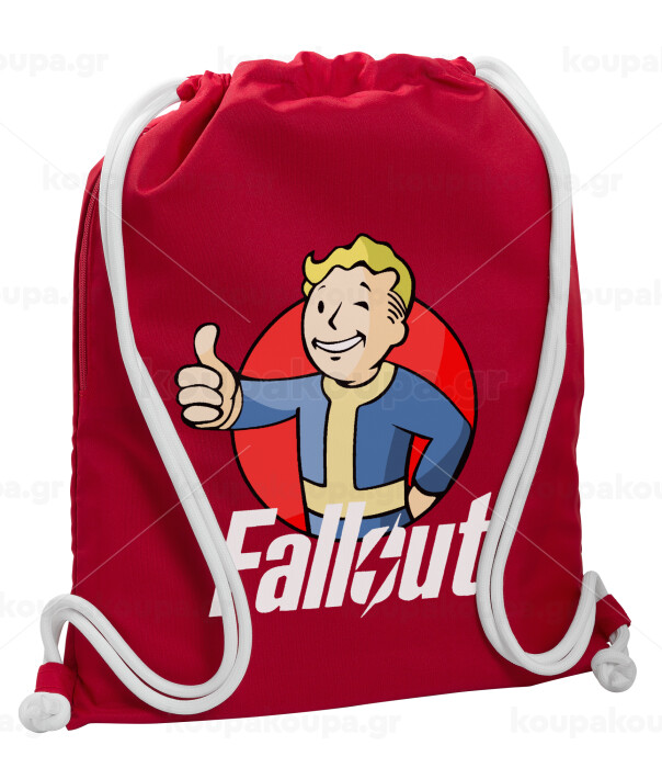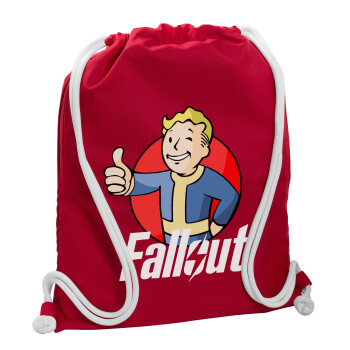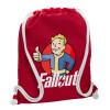 Fallout Vault Boy, Τσάντα πλάτης πουγκί GYMBAG Κόκκινη, με τσέπη (40x48cm) & χονδρά κορδόνια