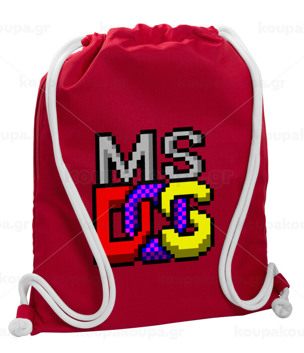 MsDos, Τσάντα πλάτης πουγκί GYMBAG Κόκκινη, με τσέπη (40x48cm) & χονδρά κορδόνια
