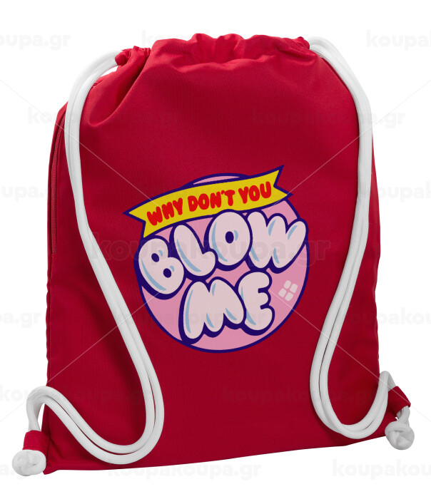 Why Don't You Blow Me Funny, Τσάντα πλάτης πουγκί GYMBAG Κόκκινη, με τσέπη (40x48cm) & χονδρά κορδόνια