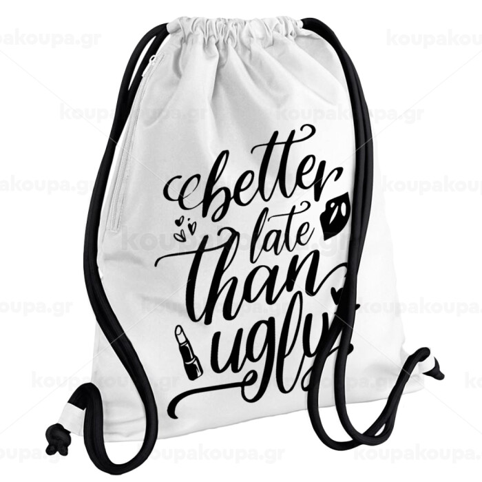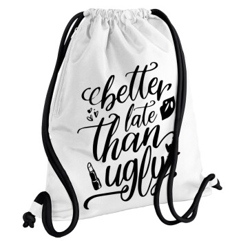Better late than ugly, Τσάντα πλάτης πουγκί GYMBAG λευκή, με τσέπη (40x48cm) & χονδρά κορδόνια