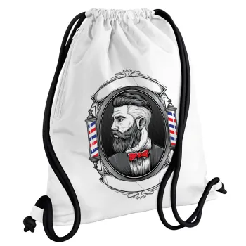 Barber shop, Τσάντα πλάτης πουγκί GYMBAG λευκή, με τσέπη (40x48cm) & χονδρά κορδόνια