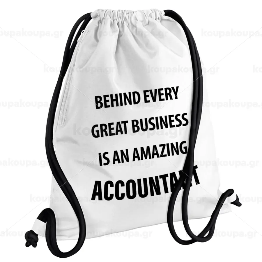 Behind every great business, Τσάντα πλάτης πουγκί GYMBAG λευκή, με τσέπη (40x48cm) & χονδρά κορδόνια