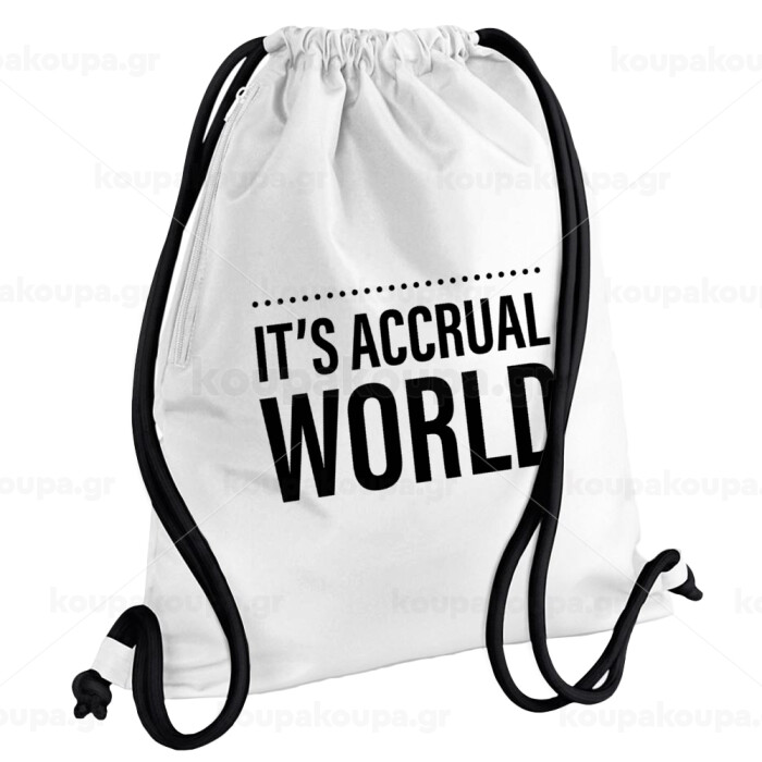 It's an accrual world, Τσάντα πλάτης πουγκί GYMBAG λευκή, με τσέπη (40x48cm) & χονδρά κορδόνια