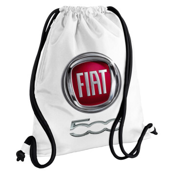 FIAT 500, Τσάντα πλάτης πουγκί GYMBAG λευκή, με τσέπη (40x48cm) & χονδρά κορδόνια