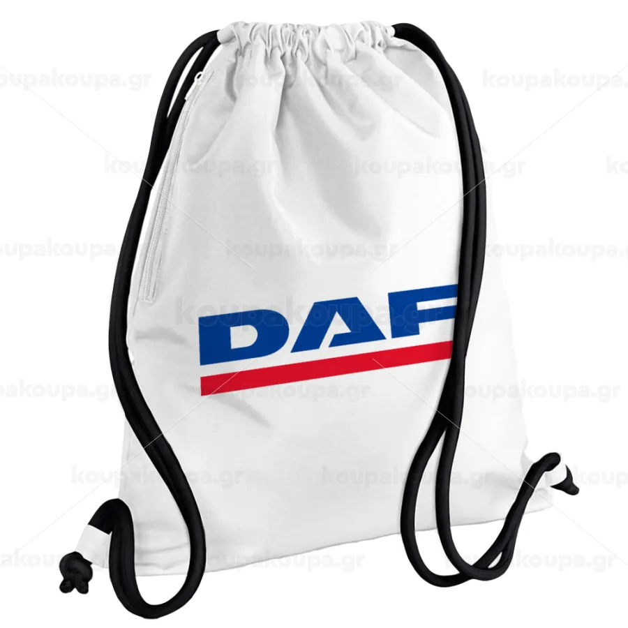 DAF, Τσάντα πλάτης πουγκί GYMBAG λευκή, με τσέπη (40x48cm) & χονδρά κορδόνια