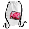 Fight Club, Τσάντα πλάτης πουγκί GYMBAG λευκή, με τσέπη (40x48cm) & χονδρά κορδόνια