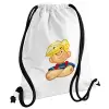 Ντένις ο τρομερός, Τσάντα πλάτης πουγκί GYMBAG λευκή, με τσέπη (40x48cm) & χονδρά κορδόνια