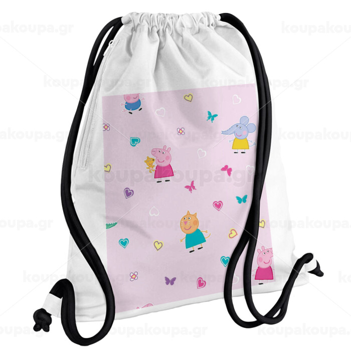 Πέππα το γουρουνάκι και οι φίλοι της, Τσάντα πλάτης πουγκί GYMBAG λευκή, με τσέπη (40x48cm) & χονδρά κορδόνια