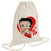 Betty Boop, Τσάντα πλάτης πουγκί GYMBAG λευκή, με τσέπη (40x48cm) & χονδρά κορδόνια