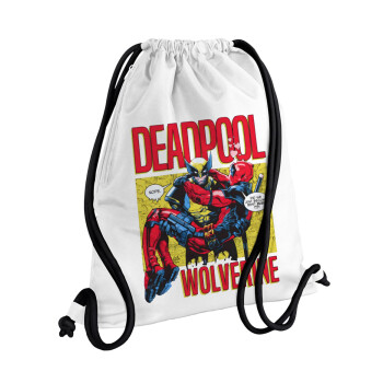 BOOM!!!, Τσάντα πλάτης πουγκί GYMBAG λευκή, με τσέπη (40x48cm) & χονδρά κορδόνια