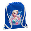 Elsa Princess, Τσάντα πλάτης πουγκί GYMBAG λευκή, με τσέπη (40x48cm) & χονδρά κορδόνια