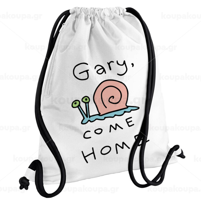 Gary come home, Τσάντα πλάτης πουγκί GYMBAG λευκή, με τσέπη (40x48cm) & χονδρά κορδόνια