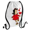 Η μικρή Λουλού, Τσάντα πλάτης πουγκί GYMBAG λευκή, με τσέπη (40x48cm) & χονδρά κορδόνια