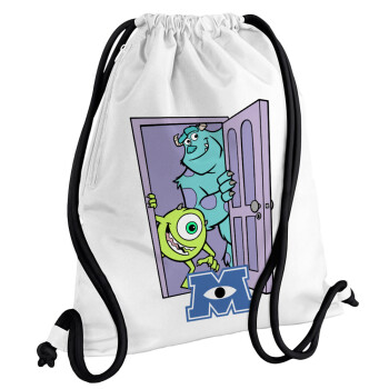 Monster inc, Τσάντα πλάτης πουγκί GYMBAG λευκή, με τσέπη (40x48cm) & χονδρά κορδόνια