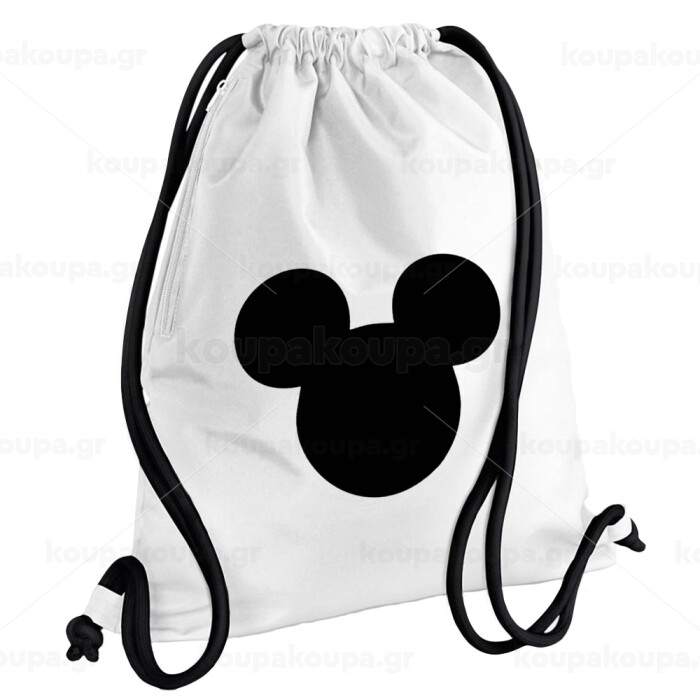 mouse man, Τσάντα πλάτης πουγκί GYMBAG λευκή, με τσέπη (40x48cm) & χονδρά κορδόνια