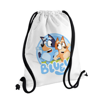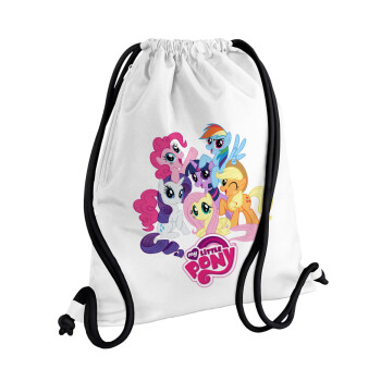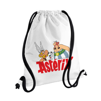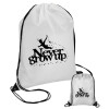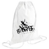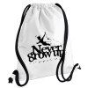 Peter pan, Never Grow UP, Τσάντα πλάτης πουγκί GYMBAG λευκή, με τσέπη (40x48cm) & χονδρά κορδόνια