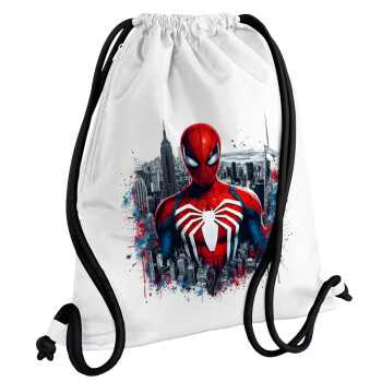 Spiderman City, Τσάντα πλάτης πουγκί GYMBAG λευκή, με τσέπη (40x48cm) & χονδρά κορδόνια