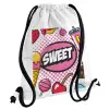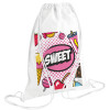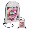 SWEET, Τσάντα πλάτης πουγκί GYMBAG λευκή, με τσέπη (40x48cm) & χονδρά κορδόνια