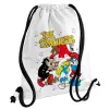 Τα στρουμφάκια, Τσάντα πλάτης πουγκί GYMBAG λευκή, με τσέπη (40x48cm) & χονδρά κορδόνια
