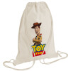 Woody cowboy, Τσάντα πλάτης πουγκί GYMBAG λευκή, με τσέπη (40x48cm) & χονδρά κορδόνια