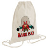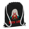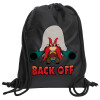 Yosemite Sam Back OFF, Τσάντα πλάτης πουγκί GYMBAG λευκή, με τσέπη (40x48cm) & χονδρά κορδόνια