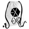 EXO Band korea, Τσάντα πλάτης πουγκί GYMBAG λευκή, με τσέπη (40x48cm) & χονδρά κορδόνια