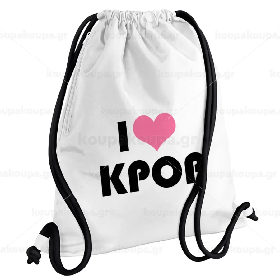 I Love KPOP, Τσάντα πλάτης πουγκί GYMBAG λευκή, με τσέπη (40x48cm) & χονδρά κορδόνια