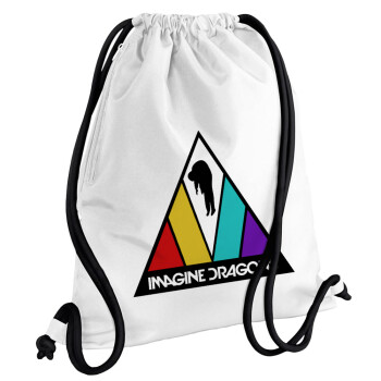 Imagine Dragons, Τσάντα πλάτης πουγκί GYMBAG λευκή, με τσέπη (40x48cm) & χονδρά κορδόνια