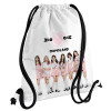 Momoland pink, Τσάντα πλάτης πουγκί GYMBAG λευκή, με τσέπη (40x48cm) & χονδρά κορδόνια