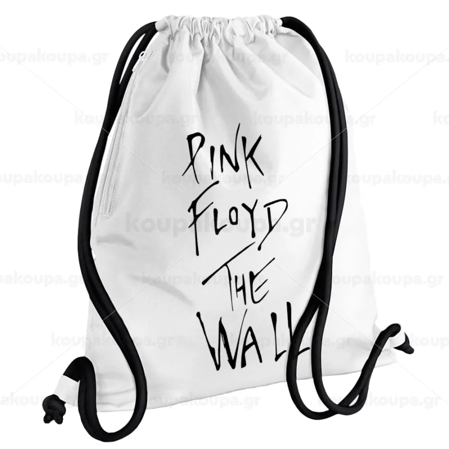 Pink Floyd, The Wall, Τσάντα πλάτης πουγκί GYMBAG λευκή, με τσέπη (40x48cm) & χονδρά κορδόνια