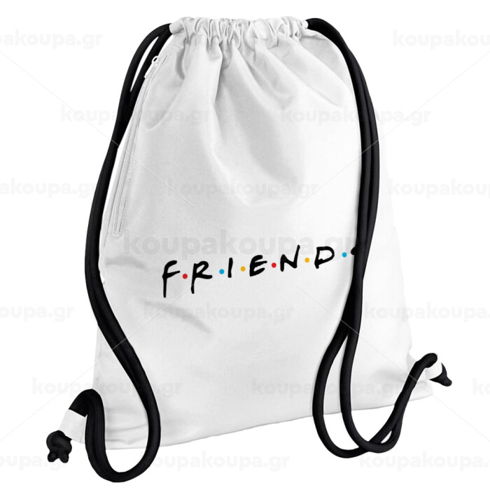 Friends, Τσάντα πλάτης πουγκί GYMBAG λευκή, με τσέπη (40x48cm) & χονδρά κορδόνια